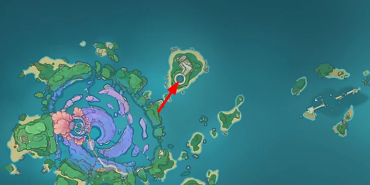 Посетите остров, отмеченный красной стрелкой на скриншоте ниже