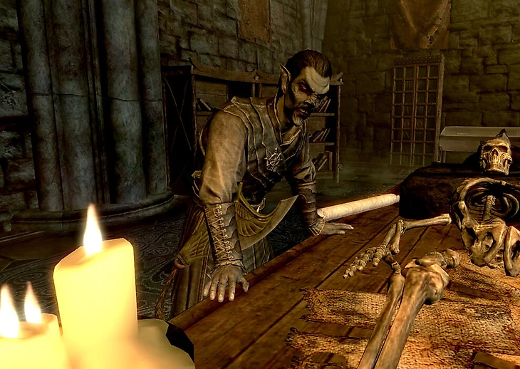 Кстати, Довакин все еще остается вампиром, даже когда он не превращается в 3 фазу Детлаффа. Так что можно пользоваться полезными фишками от обычного Сангвинаре вампирис,в том числе баффом 25% к скрытности и таким же улучшением заклинаний школы «Иллюзии». Скрытное прохождение хорошо комбинируется со способностью «туманная форма» вампира-лорда: позволяет сбежать в случае обнаружения и идеально для отыгрыша вампира пацифиста в духе Региса.