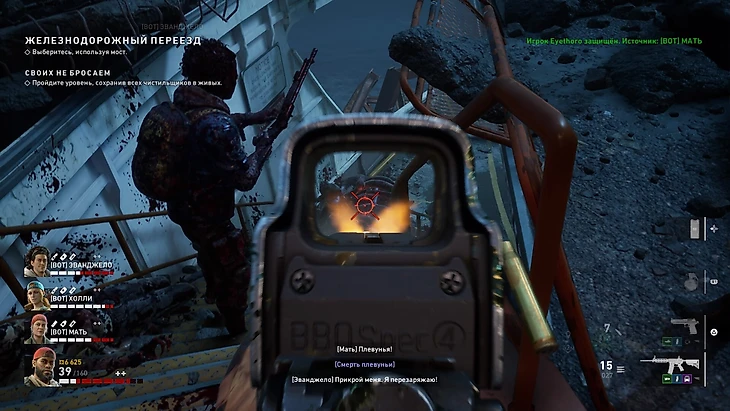 Скучный геймплей. Как я уже говорил, основная цель миссии – добежать с одного конца карты до другого, убивая всех зомби на пути. Немного интереса добавляют сторонние квесты – например, «Пройти уровень, сохранив всех игроков в живых», «Пройти уровень за Х минут». Да, они добавляют немного интереса, но не более чем на одно-два прохождения с друзьями.