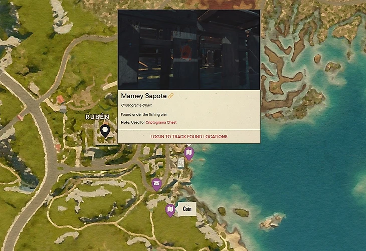 В центральной части территории Барьяль, юго-восточнее от города Рубен, можно отыскать сундук. Криптограмма Мейми Сапоте спрятана под рыболовным пирсом. Изображение Монета располагается рядом в пещере. Чтобы пробраться внутрь, потребуется пройти по синим указателям до сетей. Для получения криптограммы нужно использовать Молотов и сможете пройти дальше. Используйте фонарик для нахождения изображения, спрятанного на куске разломанной деревяшки.