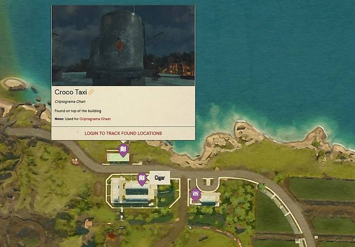 Чтобы получить сокровище, найдите криптограмму Сигара вы найдете на крыше здания напротив клиники. На ней нужно найти стул, обмотанный красными нитками, а возле него будет прикреплен нужный рисунок. Кроко Такси спрятан на крыше здания напротив дома, где вы нашли Сигару.