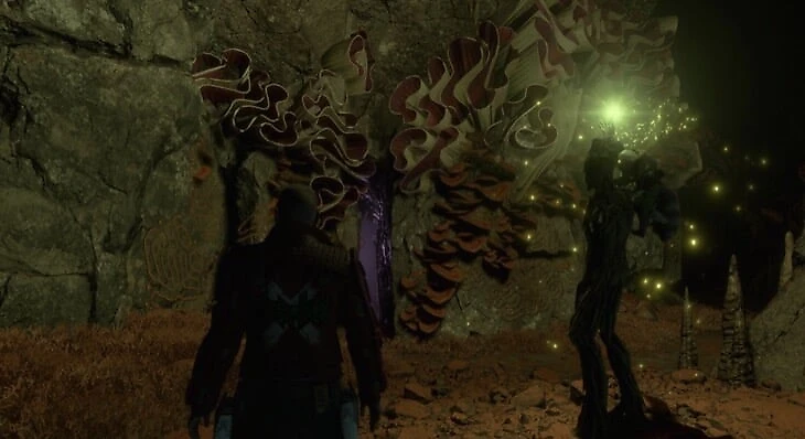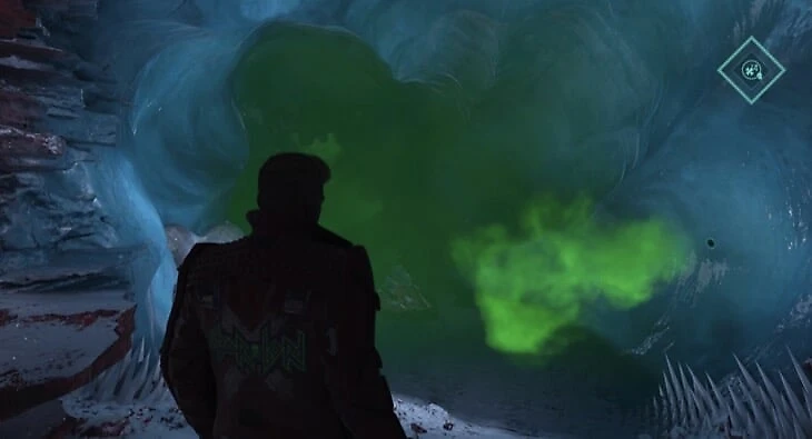 Продвигаясь по основному пути, вы доберетесь до пещеры с ядовитым газом. На другой стороне будет сражение, после чего Грут использует свою способность, чтобы сделать мост. Справа от него ледяная стена, на которой можно использовать способность Гаморы. Наверху лежит предмет.