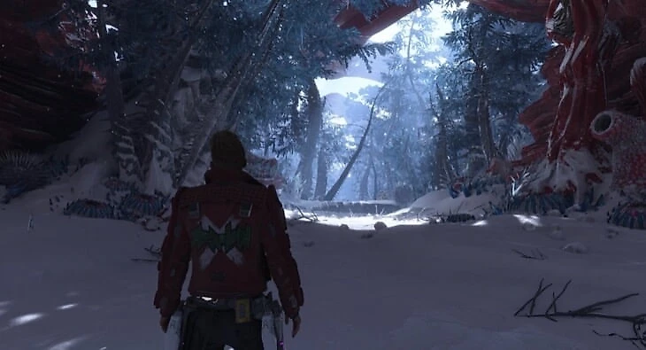 Сразу после получения костюма «Военный Лорд» вы выйдете из пещеры и заметите Вендиго наверху. Вы окажетесь в лесу с ядовитыми растениями. Держитесь правой стороны. Вы найдете предмет перед двумя красными деревьями.