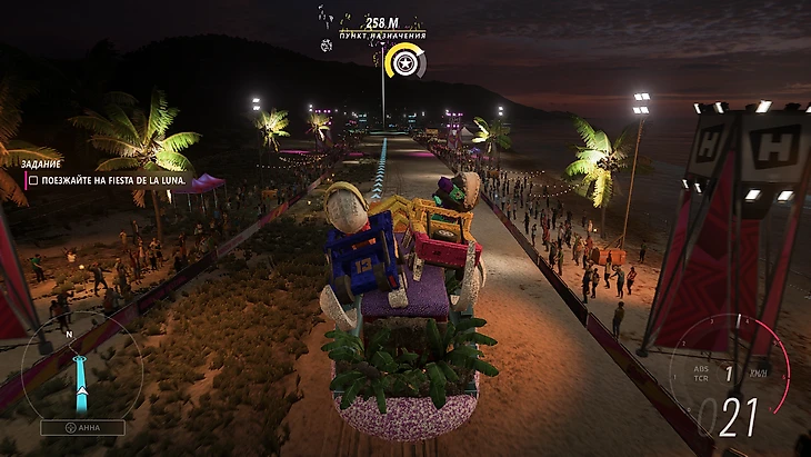 Помимо основного сюжета о фестивале в игре есть квесты, напоминающие стандартные «подай – принеси». Они оформлены в короткие цепочки челленджей с простеньким сюжетом для лучшего знакомства с персонажами. Рамиро, товарищ главного героя/героини/небинарной персоны, отправляется на поиски «большой кошки» в заброшенный аэропорт и просит звезду фестиваля заодно найти его авиакостюм; сестра Рамиро в лишний раз напомнит о важности семьи и обдаст плотным вайбом «Форсажа», а другая знакомая задалась целью сфотографировать все древние статуи на карте – и для этого ей нужна ваша помощь. И, конечно, куда без разных фестивалей и праздников – как вам задание порулить гигантской платформой-пиньятой, а потом с разгона отправить ее с обрыва?