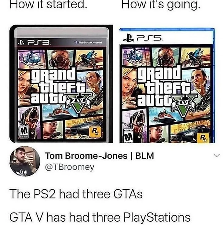 «На PlayStation 2 вышло 3 части GTA. Пятая GTA вышла на трех консолях PlayStation».