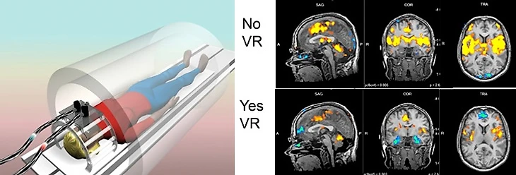 И ладно если бы это был чисто психологический эффект  –  на МРТ видно, как в мозге больного чуть ли не в два раза снижается активность болевых рецепторов, когда тот играет в VR.