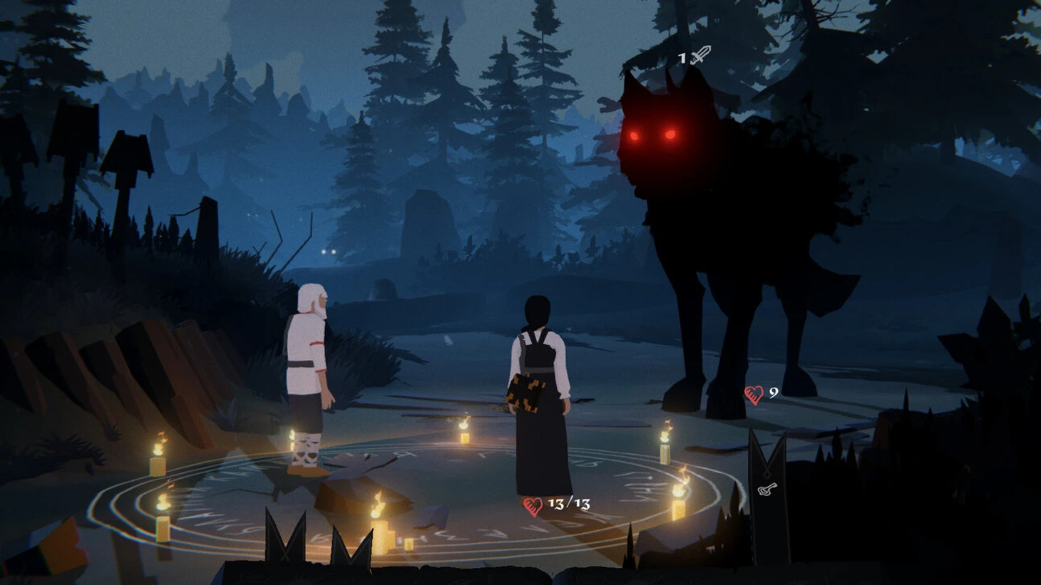 На этом и строится ролевой элемент игры. Василисе приходится балансировать между молитвами и черными заговорами. Первые лечат героиню и помогают местным жителям справиться с темными силами, вторые наносят урон и порчу, повышая счетчик грехов Василисы. Только совмещая темную и светлую силы можно пройти игру, ведь без атакующих темных чар Василиса не может справиться с чудовищами, которые встают на ее пути.