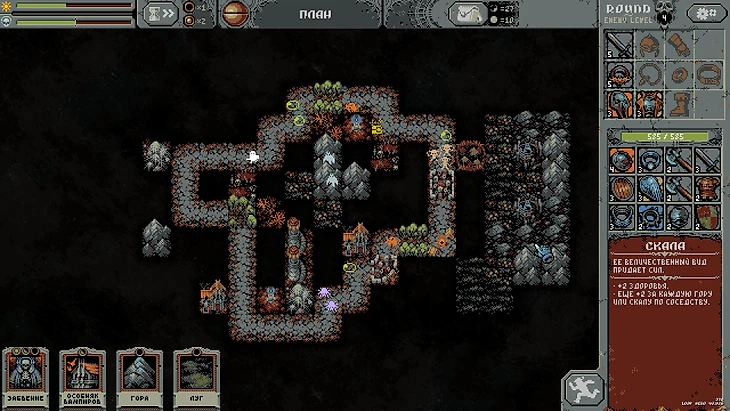 Главное в макроменеджменте для игрока – застройка карты. Можно строить на пути героя деревни, где тот сможет набраться сил. Или добавлять горы, которые не только принесут новые сокровища, но и вызовут набеги гоблинов.