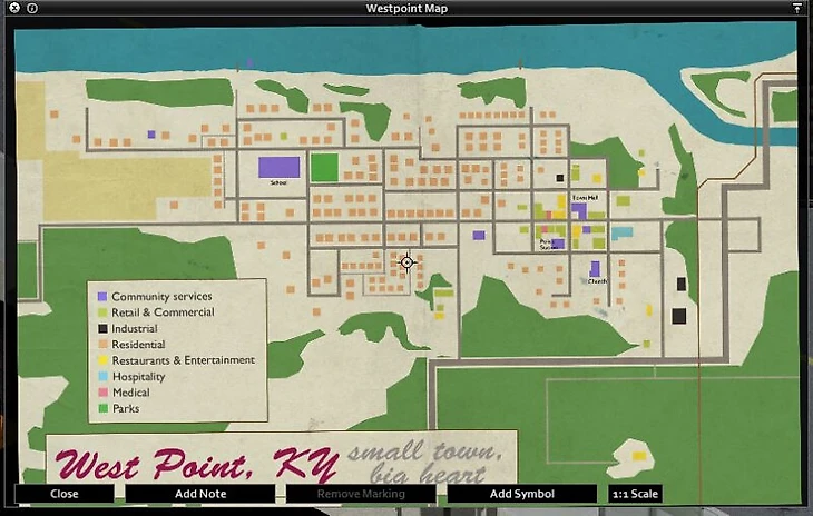 Такие магазины находятся в Вест-Пойнте, поэтому очень важно раздобыть карту Вест-Пойнта. Выглядит она так:
