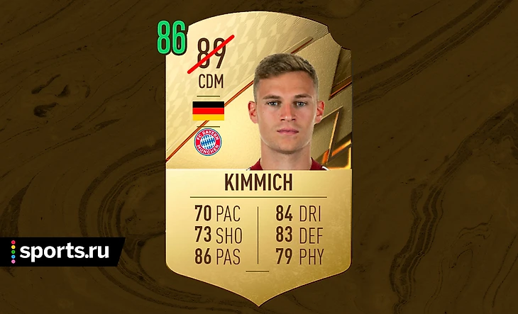 Карточку Киммиха спасают разнообразие характеристик и превосходные пасы (86). Игроки чаще используют его в центре поля, где защитные навыки не так важны.