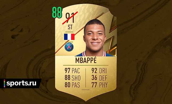 Самая дорогая и желаемая игроками карточка неожиданно оказалась переоценена на 3 пункта. Смена позиции не пошла Мбаппе на пользу. Килиану не хватает фактуры для роли классического форварда: он не так силен в «физике», а проработка его ударов не выглядит комплексной – отстают дальние удары (82) и пенальти (79).