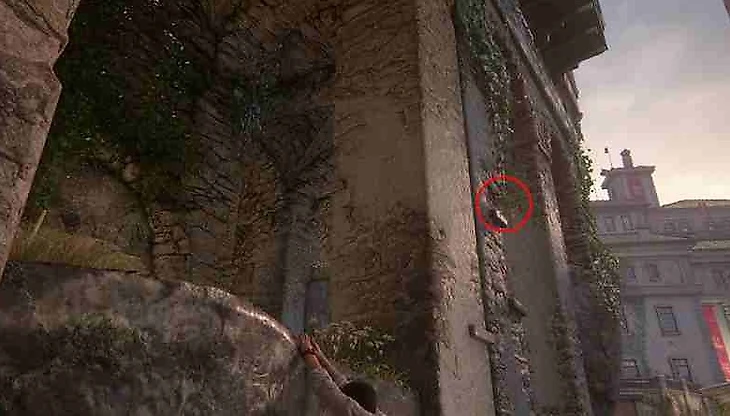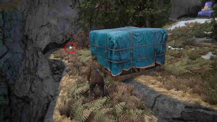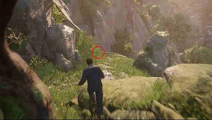 Первое сокровище расположено на скале с видом на особняк. Нужно повернуть налево и между скалами обнаружится награда.