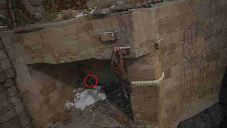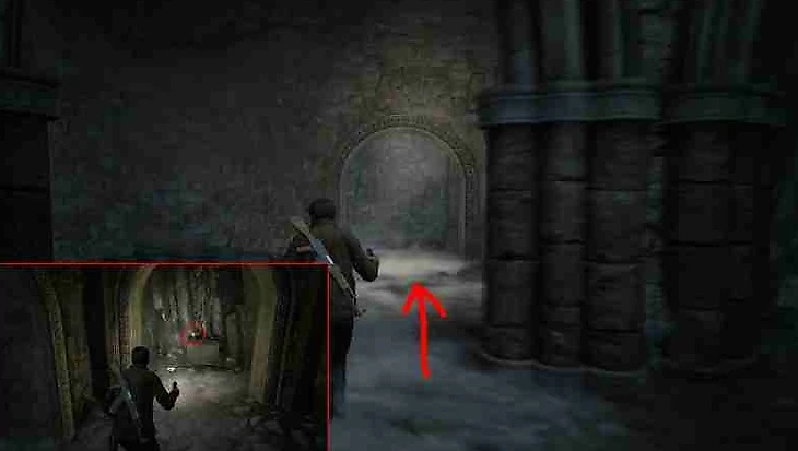 По направлению к кладбищу нужно пройти колонны. В конце пути нужно подняться вверх до уступа. С него нужно спуститься и в комнате лежит сокровище.