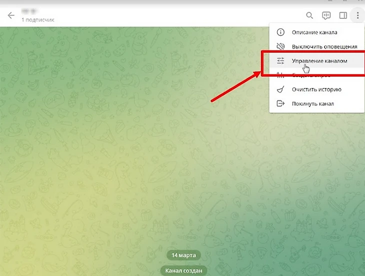 8. В правом верхнем углу нажимаем на «три точки» и выбираем пункт «Управление каналом». Вносим необходимые изменения и не забываем сохранить.