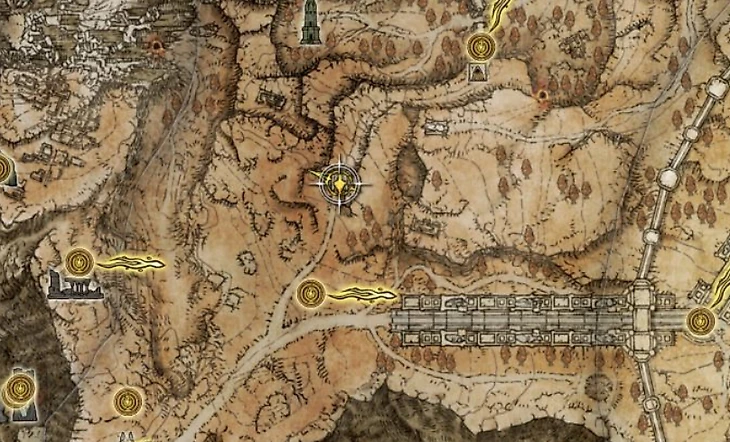Золотая Маска находится чуть севернее. Он стоит на краю разрушенного моста. Ближайшей точкой благодати будет Доминула, деревня ветряной мельницы.