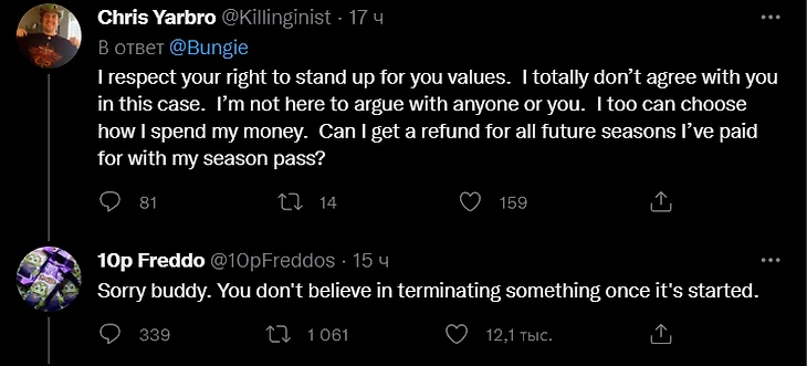 Когда Bungie перестала отвечать, споры продолжились. В топе по лайкам оказались шутки.