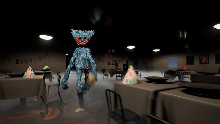 Хагги Вагги – один из самых популярных и визуально устрашающих персонажей игры. Он впервые появляется перед игроками в выставочном зале в виде статуи, в первой главе игры, под названием “Тесное сжатие”. Это гигантское, ужасающее синее существо с выпученными глазами, широкими красными губами и длинными конечностями, которое активно следует за вами по пятам, пока вы пытаетесь разгадать очередную головоломку или найти кассету. Он регулярно и неожиданно появляется в темноте, пытаясь поймать вас. И если вы попадетесь, Huggy Wuggy оскалится своей широкой и зловещей ухмылкой и съест вас.