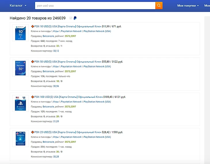 Коды можно найти у интернет-продавцов, например, на Plati.market (ранее Plati.ru) или других аналогах. Искать можно по запросу «psn usd usa» или «карта оплаты PSN USA». Читайте отзывы о продавцах, смотрите на их рейтинг и количество продаж. Не покупайте подозрительно дешевые товары.