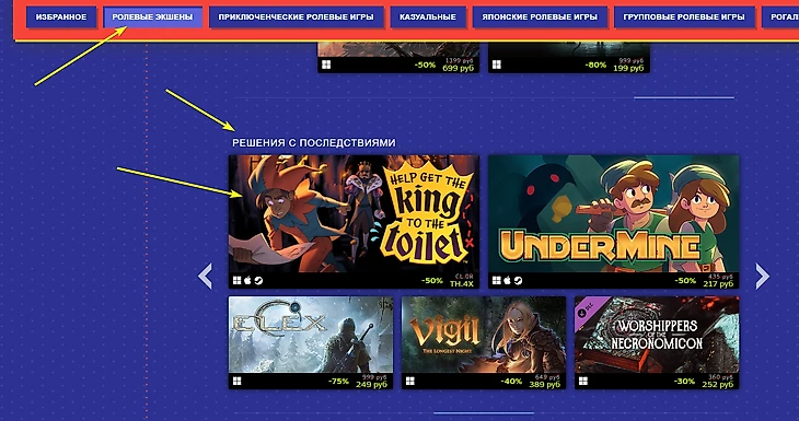 На всякий случай повторим, что точное расположение игр (поджанр и категория) могут меняться. Если игры нет в той категории или поджанре, которая написана в этом текстовом гайде, ищите обложку игры в других поджанрах и категориях.