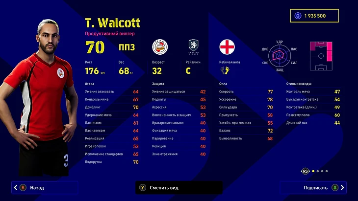 Карточка Уолкотта самая дешевая в нашем списке. Новичкам непросто укомплектовать состав, а быстрый англичанин хорошо подходит на временную роль правого вингера. Советуем качать Уолкотту реализацию. Так Тео воспользуется разнообразными навыками ударов и станет неплохим исполнителем штрафных.