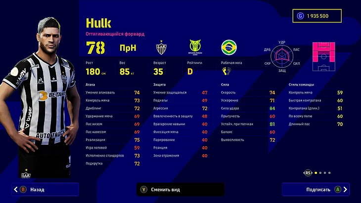 Легенде «Зенита» уже 35 лет, но он до сих пор играет в Бразилии. За достижения на родине Халк получил интересную карточку универсального форварда. Главные преимущества бразильца – мощные удары и атлетизм.