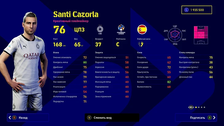 Санти Касорла уехал в «Аль-Садд» и стал эксклюзивным игроком eFootball 2022. Его характеристики схожи с Хави – испанец отлично пасует и подходит для тики-таки. Карточка выделяется закрученными ударами из-за штрафной и стандартами.