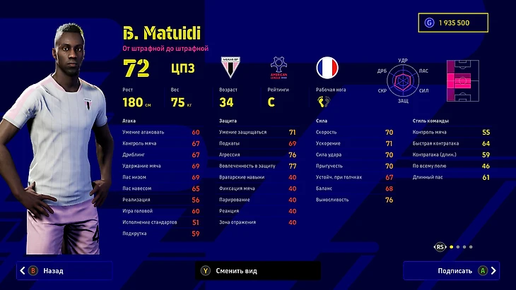 Карточка Матюиди – настоящая находка для новичка. Игрокам с небольшим рейтингом дают больше очков прогресса, но они стоят дешево. Полная прокачка сделает из француза крутого опорника. Быстрый Блез отлично отбирает мяч, а при необходимости подстрахует левый фланг.