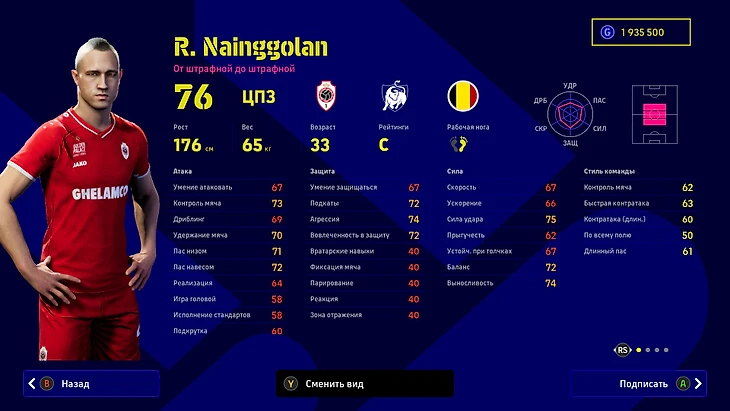 Наингголан всегда славился сбалансированными статами. Из-за возраста бельгиец немного сдал, но остался классным бокс-ту-боксом. Ключевой навык Раджи – оттягивание в оборону. Благодаря нему бельгиец возвращается в защиту и эффективно прессингует игроков соперника.