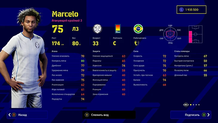 В игре полно классных защитников, но на старте можно взять настоящую звезду – Марсело из «Реала». Атакующий ЛЗ прокачивается до рейтинга 88 и обладает прекрасным дриблингом, передачами и огромным количеством умений. Вместе с Марсело в топе мог оказаться Дани Алвес, но из-за возраста ему не хватает скорости для родной позиции.