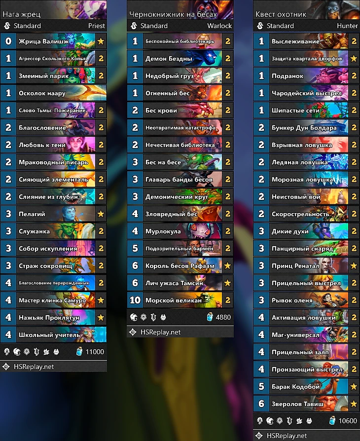 Вряд ли нужно описывать, что делает квест-охотник – с выхода «Сплоченных Штормградом» каждый игрок в ладдере познакомился с бесконечным уроном в лицо или бесконечными Хафферами. Пока в мете агро-колоды, всегда найдется санитар леса Рексар.