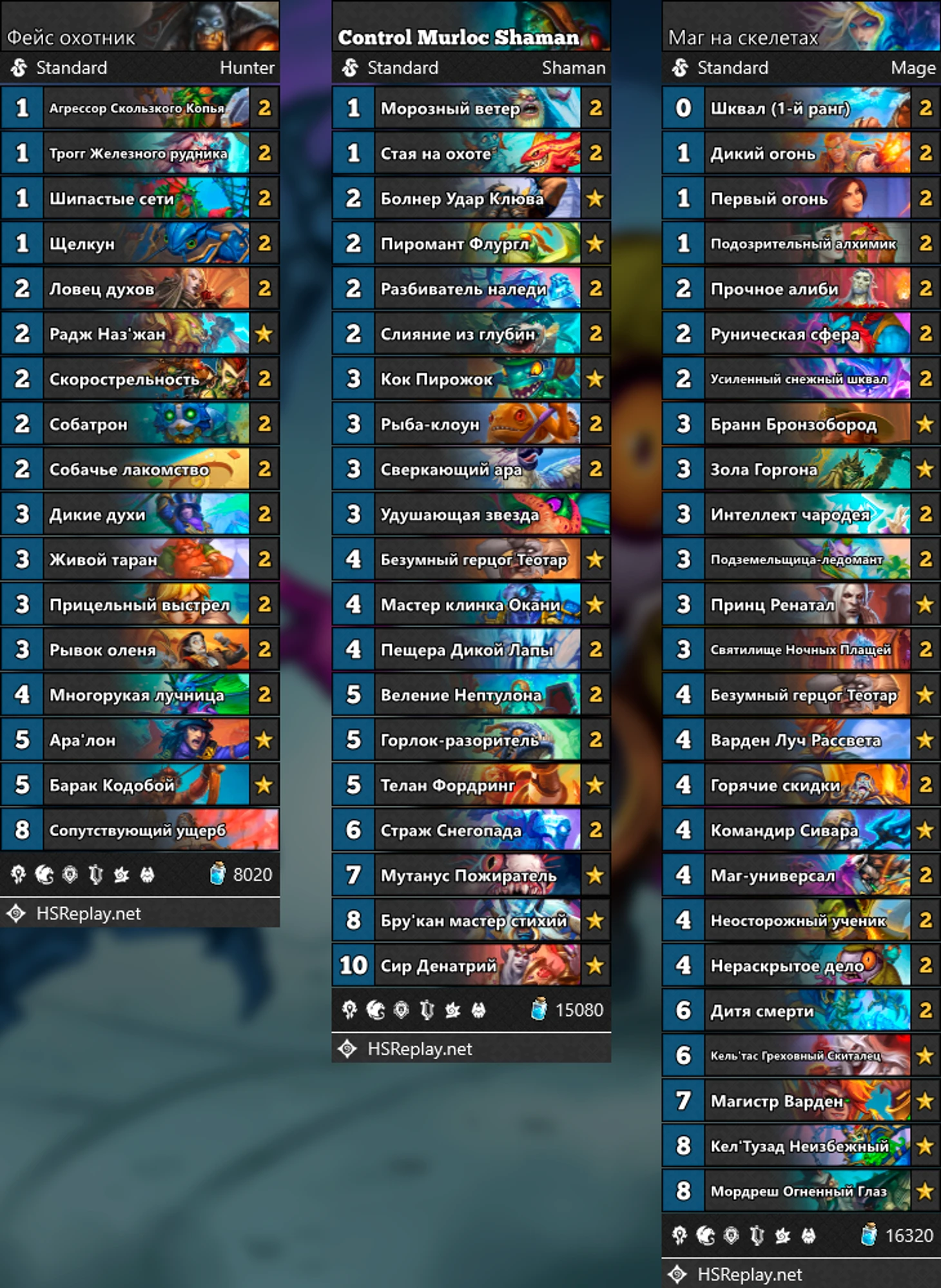 В вольном до сих пор играют Дрыжеглот-шаманом, против которого невероятно больно играть другими контроль-колодами. Так вот, новый стандартный шаман не уступает ему по уровню противности – в нем куча карт, взаимодействующих с рукой противника, мастер клинка Окани и сир Денатрий, который может отхилить не хуже Рено.