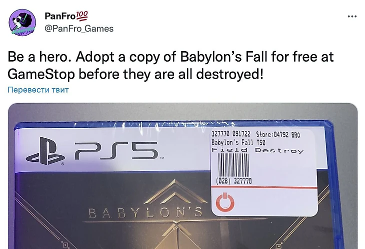 В конце сентября несколько игровых ритейлеров США, включая гиганта GameStop, сказали сотрудникам изъять диски с Babylon’s Fall из продажи, после чего сломать их и выбросить. На фоне этого некоторые магазины начали отдавать диски всем желающим абсолютно бесплатно – а ведь еще в феврале их продавали за полную стоимость в 60 долларов!