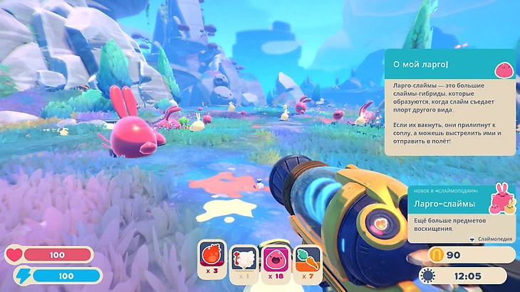 Slime Rancher 2 – симулятор фермера, который заботится не о козах, а о живых слаймах. В руках героя навороченная всасывающая пушка – ей можно ловить существ и относить их на базу. Идея понравилась геймерам: первая часть разошлась тиражом в 5 миллионов копий, а единовременный онлайн сиквела превысил 20 тысяч игроков. Я тоже стал необычным фермером и делюсь опытом!
