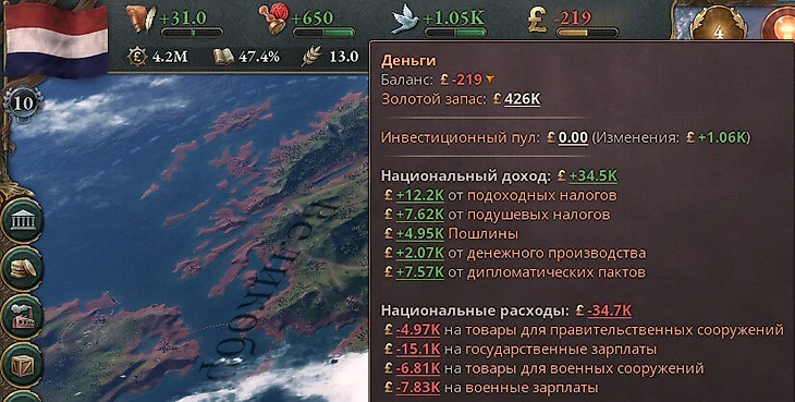 Бюджет вашего государства состоит из доходов (налоги, пошлины и пакты) и расходов (субсидии на бюрократические и военные траты). Профицит напрямую зависит от цены товаров и услуг на вашем рынке. Дело в том, что любой товар (от угля до электричества) не появляется из ниоткуда, для его производства нужно задействовать подходящие сооружения и устроить на работу квалифицированный персонал.
