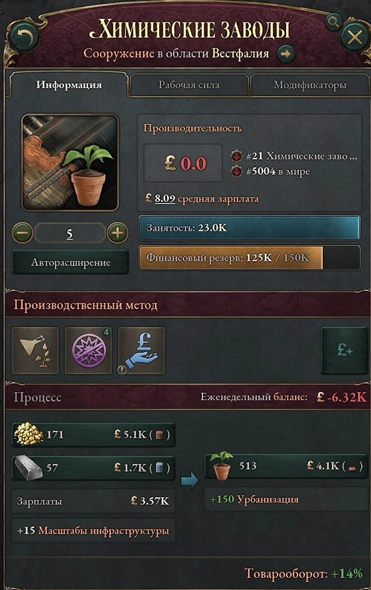 • В Victoria 3 много микроконтроля, связанного с производственными методами. Кажется, что выбирать как и что производить должны владельцы предприятий в зависимости от потребностей рынка, но игра эти обязанности взваливает на вас.