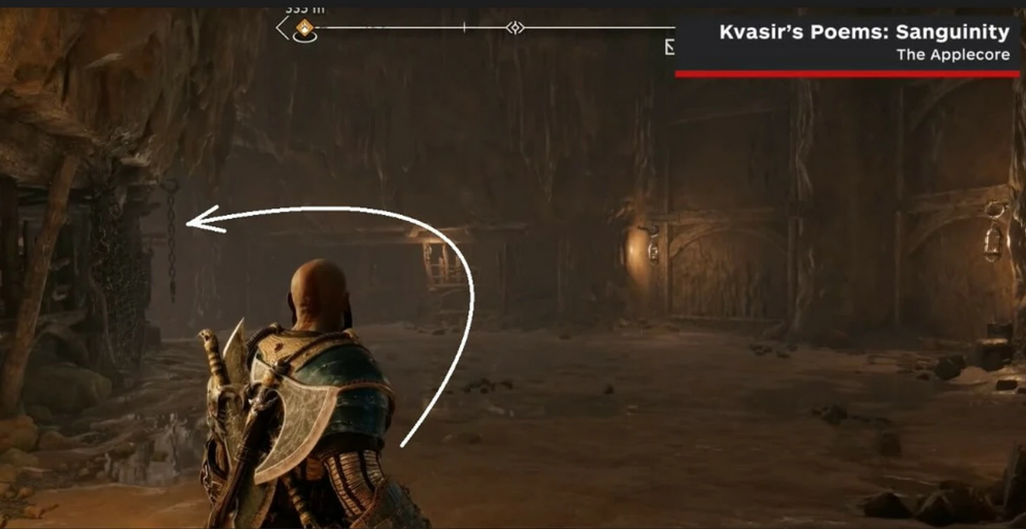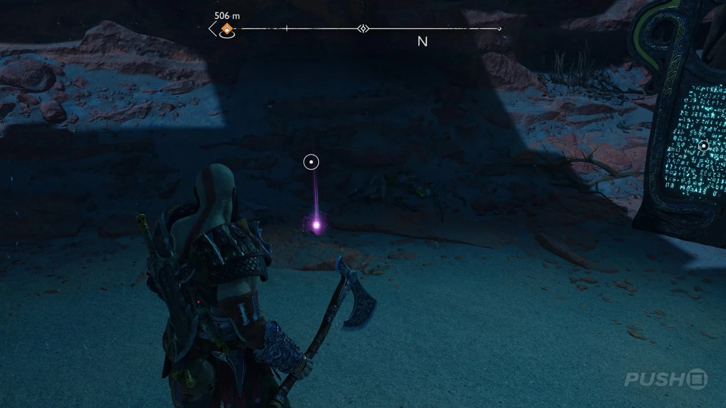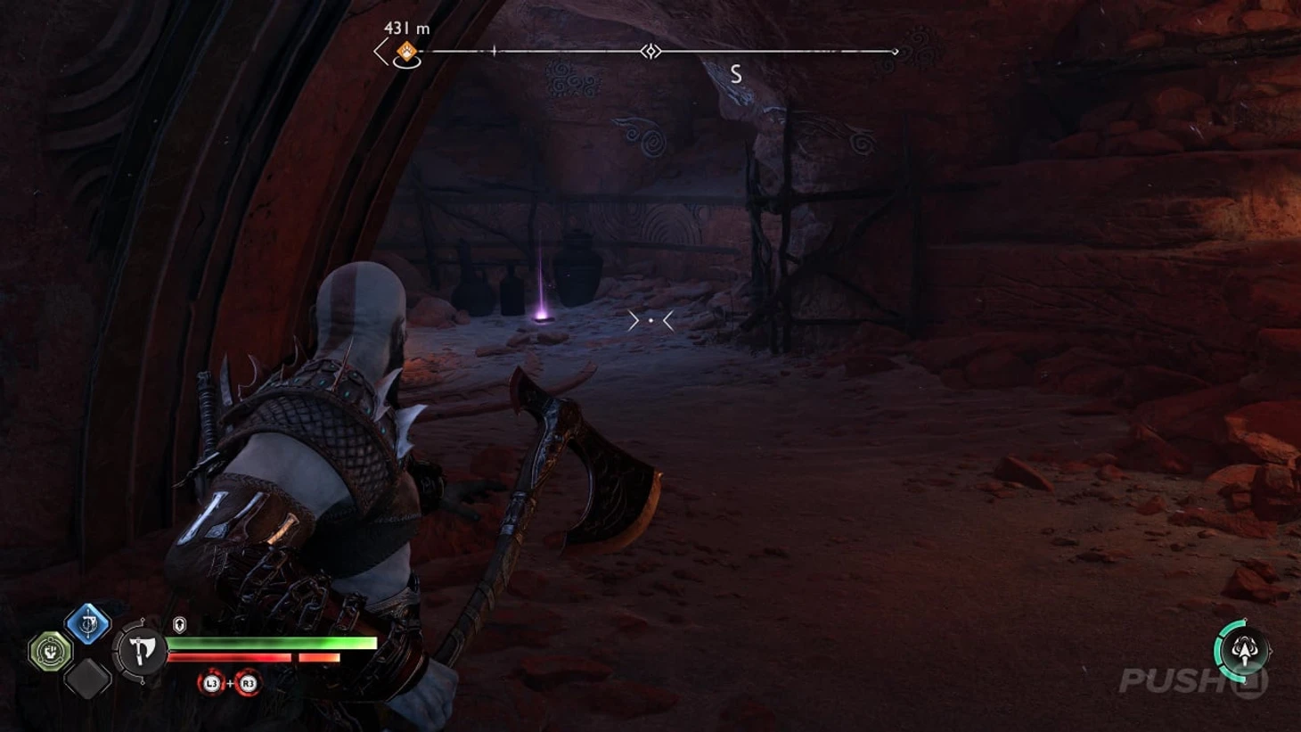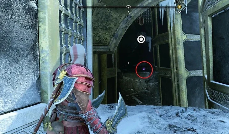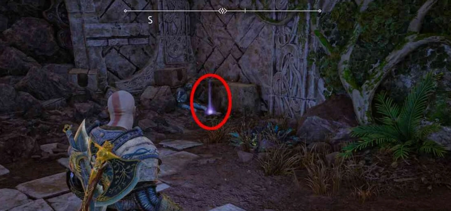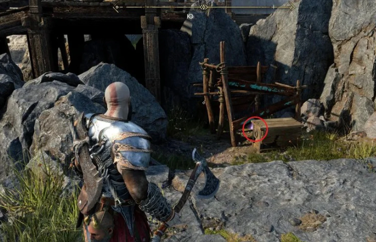 Вам нужно прибыть в Нидавеллир. Вы это сможете сделать в рамках квеста «Путь к Тюру». Здесь вас ждет встреча с Синдри, который даст вам новую способность, обновив лук Атрея. Возвращайтесь к причалу. Справа у вас будет преграда, которую нужно уничтожить с помощью лука. Забирайте Артефакт.