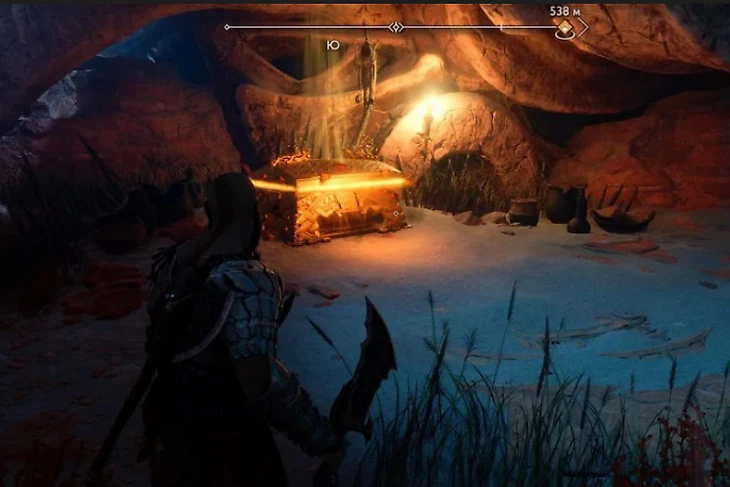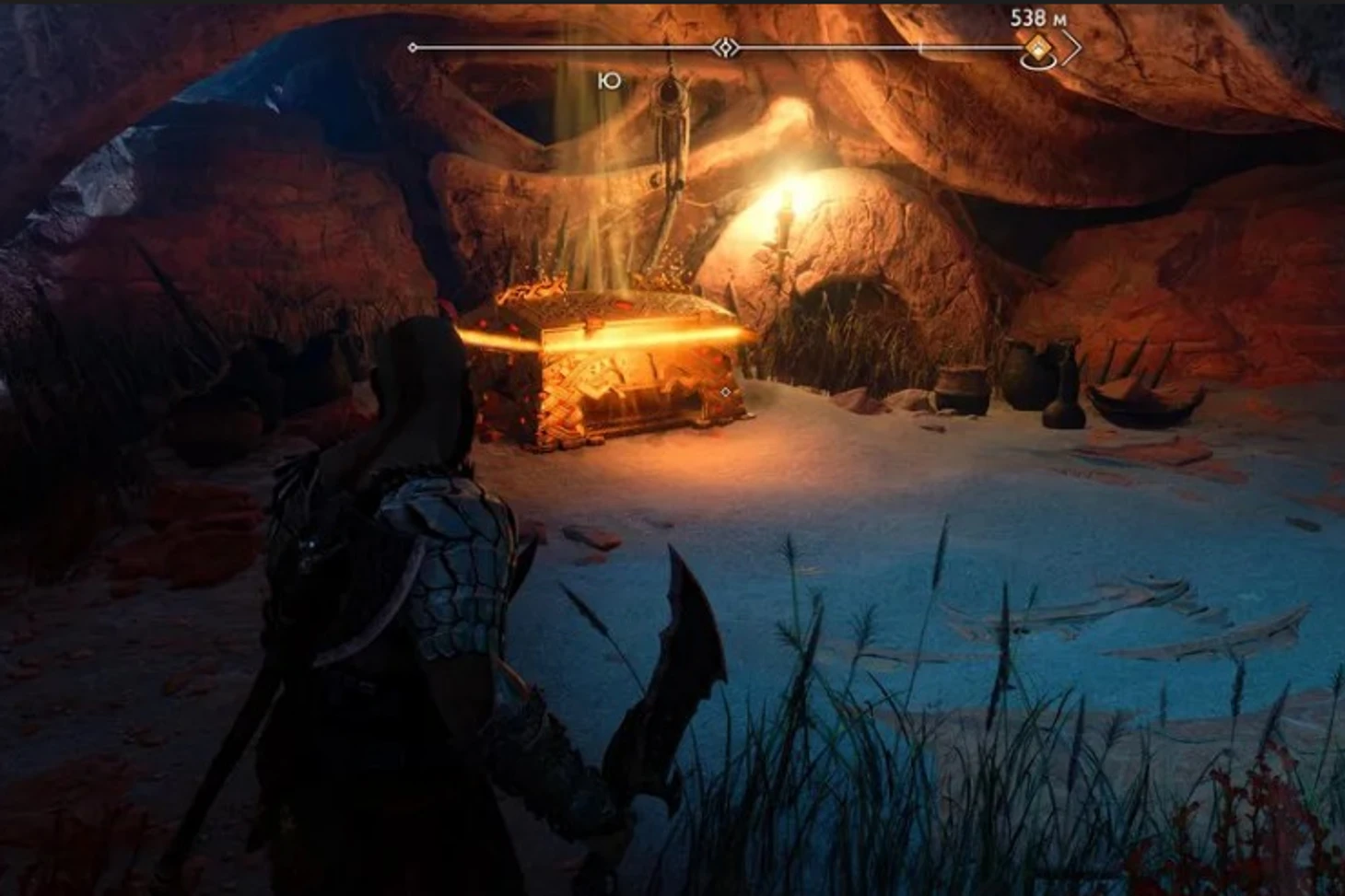 Во время квеста «Путь к Тюру» вы должны найти красный сундук. На вашем пути будут гейзеры, металлический блок и ворота. Справившись с заданиями, вы получите Артефакт. Он находится на столе недалеко от красного сундука.
