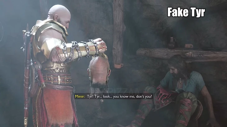 Кратос и Атрей нашли Тюра, привели его в убежище и просили о помощи. Но вскоре выяснилось, что под одной крышей с героями живет не бог войны. Это Один принял облик Тюра, чтобы шпионить и стравливать спартанца с сыном.