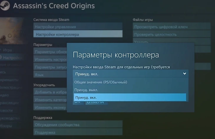 Как правило, геймпад работает со Steam без особых проблем, но в некоторых случаях придется открыть настройки игры в Стиме, чтобы принудительно активировать контроллер: