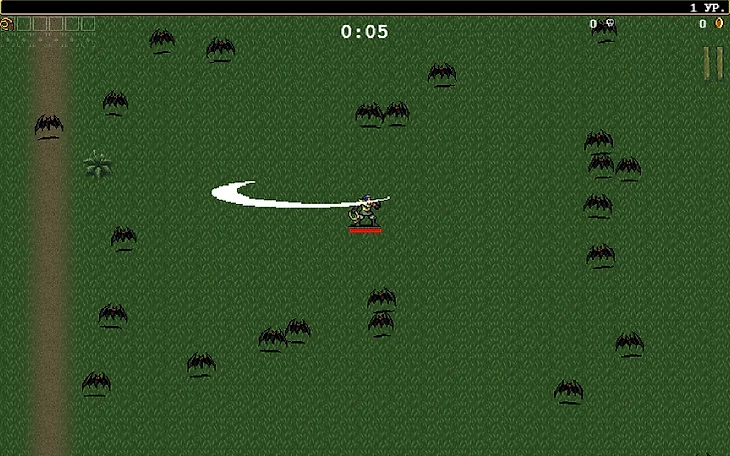 Vampire Survivors похожа на игру из 90-х: здесь пиксельная графика, а все локации наспех созданы из однотипных шаблонов. Я ждал, что главный герой начнет стрелять, но он лишь медленно двигался в разные стороны, а кнут предательски бил в одну сторону и никогда не успевал за врагами. Летучие мыши постоянно пожирали персонажа.