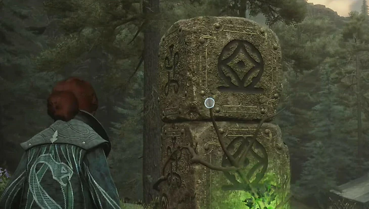 Поверните верхнюю часть каменного столпа так, чтобы руны совпадали с нижней частью. И так со всеми камнями поблизости.