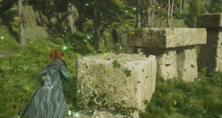 Дырявым постаментам явно чего-то не хватает – видимо, мотыльков! Рядом летает целый рой насекомых – привлеките их Люмосом к постаментам, тогда камень засветится и обрастет зеленью.