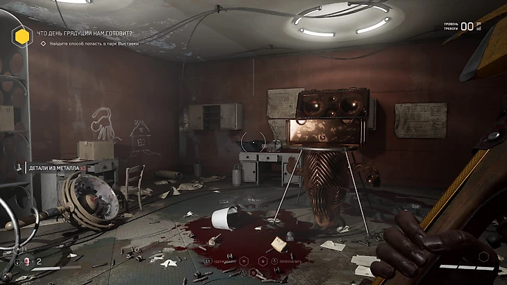 Собирать хлам приятно. Наведите перчатку на объект, и она распахнет шкафчики и всосет ресурсы. Чипы, пружины и нейрополимеры пригодятся для прокачки и крафта.