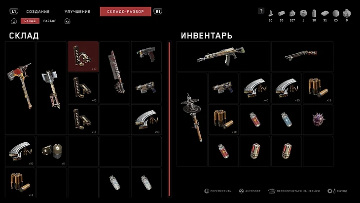 Я не стрелял из «ПМ», так что склад забился патронами. Когда разобрал их, ресурсов хватило на пару улучшений.