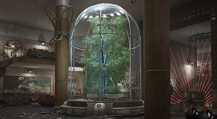 Попав в главный холл, соедините колбу с березой. Так вы откроете доступ к Пестицидному и Холодному цеху, после чего сможете продолжить миссию «В заросшем парке…».