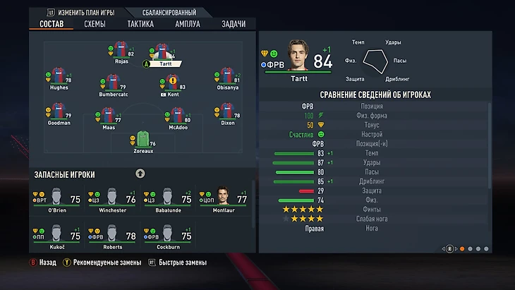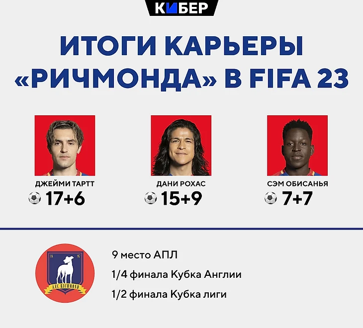 Весна получилась скомканной. «Ричмонд» часто терял очки и не приблизился к еврокубковой зоне, а в четвертьфинале Кубка Англии проиграл «Ливерпулю» (0:2). Но команда Теда выполнила главную задачу – сохранила место в Премьер-лиге. Помогли главные забивалы: Джейми Тартт (17 голов) и Дани Рохас (15 голов). Английский форвард прокачался за сезон до рейтинга 87 и стал звездой АПЛ!