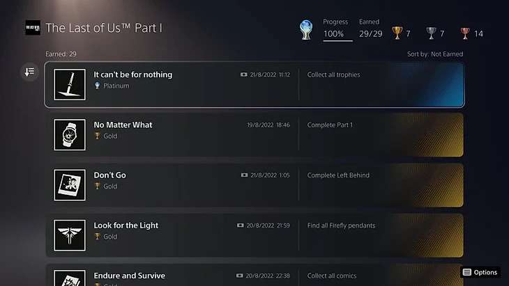 В ремейке The Last of Us получение достижений не вызывает особых трудностей, они могут быть получены за одно прохождение игры. Большая часть трофеев будет открыта по мере прохождения сюжета игры, только для нескольких из них будет необходимо собрать все верстаки или коллекционные предметы. В данном руководстве будут рассмотрены все достижения The Last of Us: Part 1 и пути их получения.