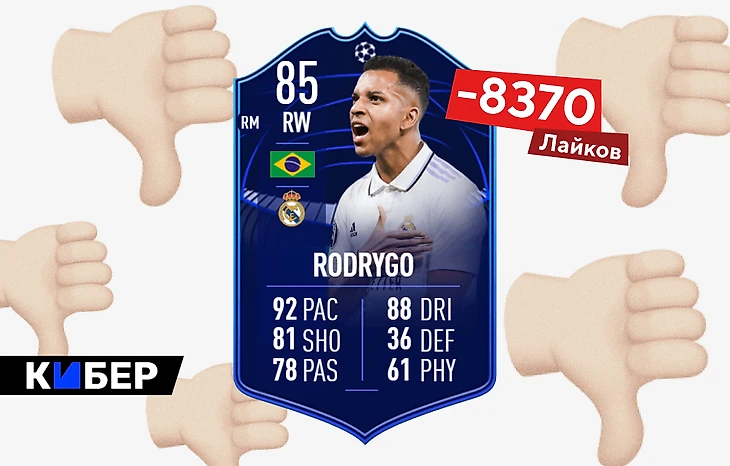 Конец февраля – начало медленного заката сезона FUT. В этом году экономика игры сильно просела, а игроки собрали составы из кумиров и ждали мощных усилений. Родриго с «Метким глазом» – приятная карта для осени, но у нее не было никаких шансов против зимних топовых вингеров, а некоторые фанаты «Реала» вообще ждали Винисиуса. Ценник в 90 тысяч монет за рейтинг 85 не добавил ей популярности.