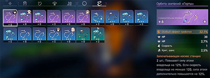 Запечатывающая космос станция. +12% к силе атаки, еще +12%, если скорость равна или выше 120 единиц. Подойдет любым основным дамагерам.
