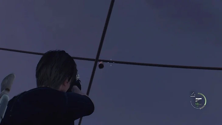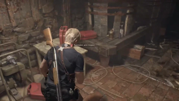 Леон доберется до главного помещения с ящиками, куриным яйцом и топливом. Соберите ценности, поднимитесь по лестнице на высокую платформу и возвращайтесь к пристани. По дороге разнесите врагов и исследуйте участки с сундуками, до которых не могли добраться. Так Леон получит маленький ключ.